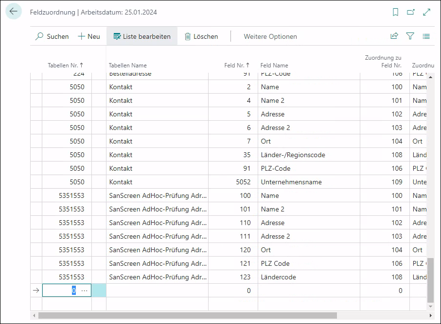Es können Adressen ausgewählt werden, für die eine regelmäßige automatische Prüfung stattfinden soll. Falls eine Tabelle fehlt, in der Adressen enthalten sind, die regelmäßig geprüft werden sollen, kann diese über die Feldzuordnung hinzugefügt werden.