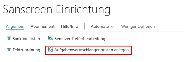 In der Sanscreen Einrichtung kann ein Aufgabenwarteschlangenposten zum Adressen prüfen und Adressen aufbereiten & prüfen angelegt werden.