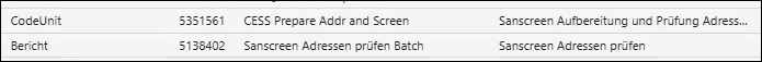 Codeunit nach Prüfung | In diesem Feld kann eine beliebige Codeunit angegeben werden, die nach jeder Adressprüfung ausgeführt wird. Als Argument muss in der Codeunit die Tabelle 5138401 „Sanscreen Posten" deklariert werden. Wird das Feld leergelassen, wird in BC keine Aktion nach einer Prüfung ausgeführt. |