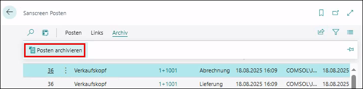 Wenn eine Zeitformel in der Einrichtung angegeben wurde, dann ist der Button "Posten archivieren" in den Sanscreen Posten sichtbar.