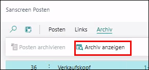 Nun können wir uns die archivierten Posten anzeigen lassen.