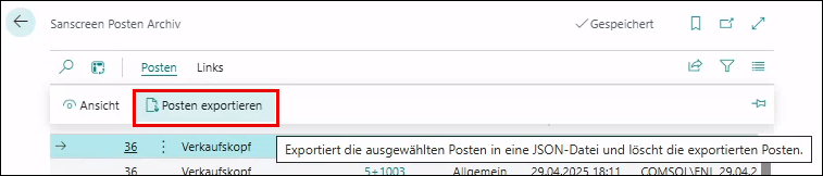Zum Schluss lassen sich die Posten nochmals als JSON-Datei exportieren, bevor sie automatisch gelöscht werden.